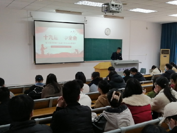 11月28日,学生第一党支部书记陈菁给支部入党积极分子上了一堂以学习十九届六中全会精神为主题的党课,重点讲解了《中共中央关于党的百年奋斗重大成就和历史经验的决议》的内容和意义。陈菁要求全体入党积极分子要深刻把握十九届六中全会的深远意义、丰富内涵和精神实质,提升思想认识,践行使命担当,为实现中华民族伟大复兴的梦想而奋斗终身。