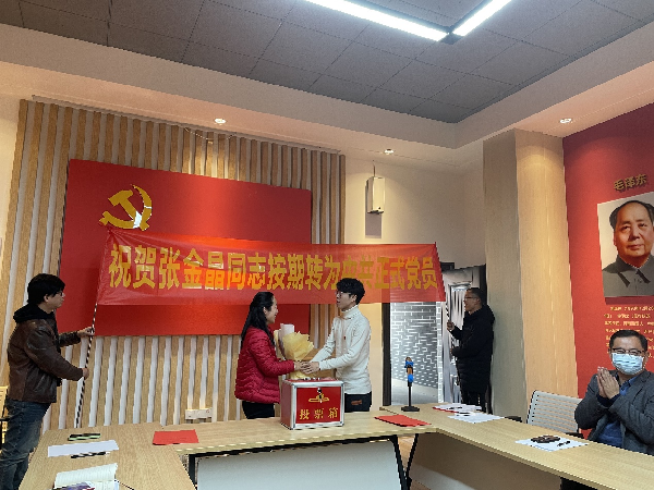 入党时刻不仅是党员身份的开启,更是牢记初心、践行使命的开端。为开好支部党员大会,支委会提前谋划,准备相关文件资料,拟定横幅内容,采购鲜花礼品,确定人员分工。经过充分讨论和表决通过,一致同意张金晶同志按期转正,一致同意接收吕飞同志为预备党员。