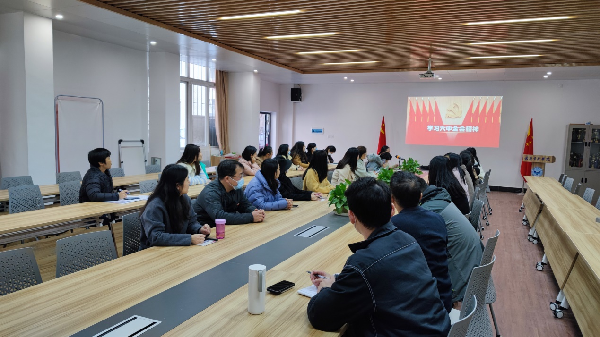 党总支书记赵瑜带领全体辅导员对十九届六中全会进行了深入学习。她围绕一个问题、两个确立、三次理论飞跃、四个历史时期和伟大成就、五大历史意义、十个方面的宝贵经验等关键词,回顾了十九届六中全会公报内容,要求全体辅导员深入理解《决议》的重大意义和深远影响,进一步增强“四个意识”,坚定“四个自信”,切实把“两个确立”转化为做到“两个维护”的思想自觉、政治自觉、行动自觉。